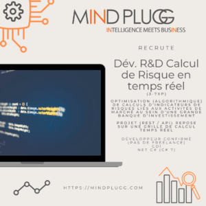 Développeur confirmé (3-7XP) en CDI uniquement (pas de Freelance) afin de travailler sur l’optimisation (algorithmique) de calculs d’indicateurs de risques liés aux activités de marché, au sein d’une grande Banque d’Investissement.
